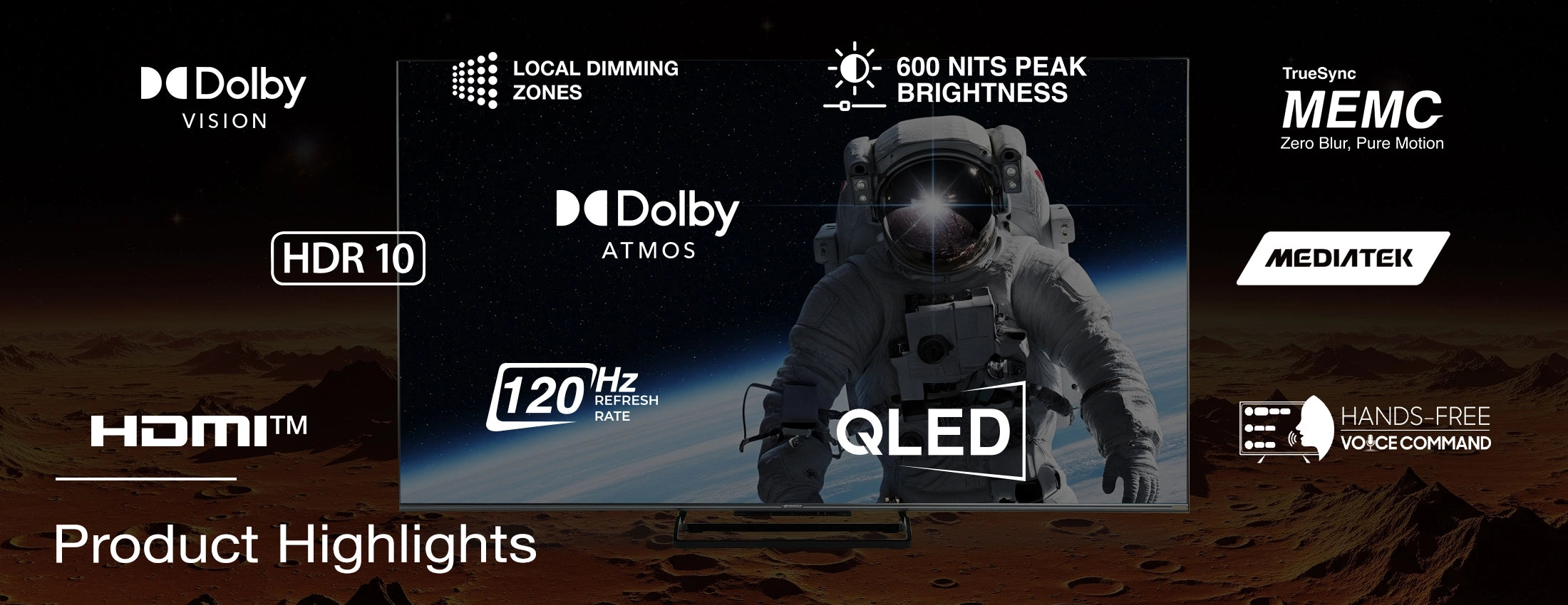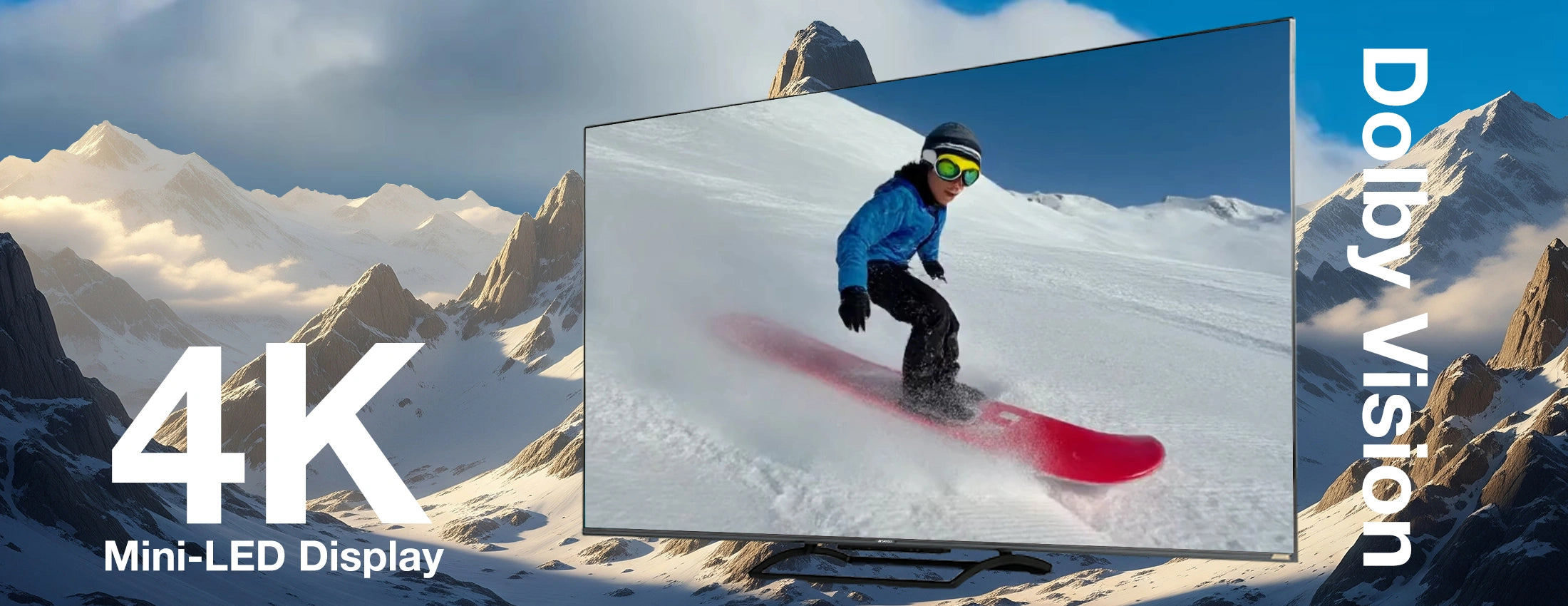Experience true-to-life visuals with High Precision Dolby Vision on the Sansui 65-inch Mini LED TV. With HDR10/10+, dynamic metadata, and hundreds of dimming zones, enjoy brighter highlights, deeper blacks, and stunning clarity for a cinematic home experience.