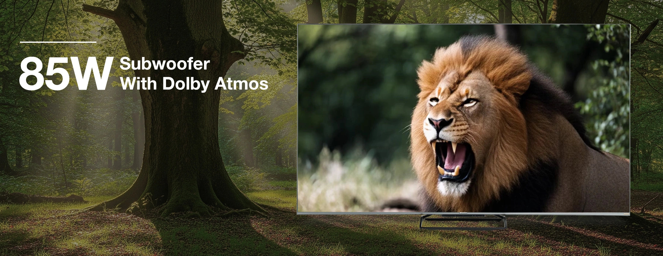 With Sansui’s 85W Speaker System and Dolby Atmos, step into a new dimension of sound. The powerful 85W output fills your space with crystal-clear highs, balanced mids, and resonant bass, while Dolby Atmos adds immersive 3D surround, making every scene feel larger than life. Together, they transform your living room into a true cinematic experience.