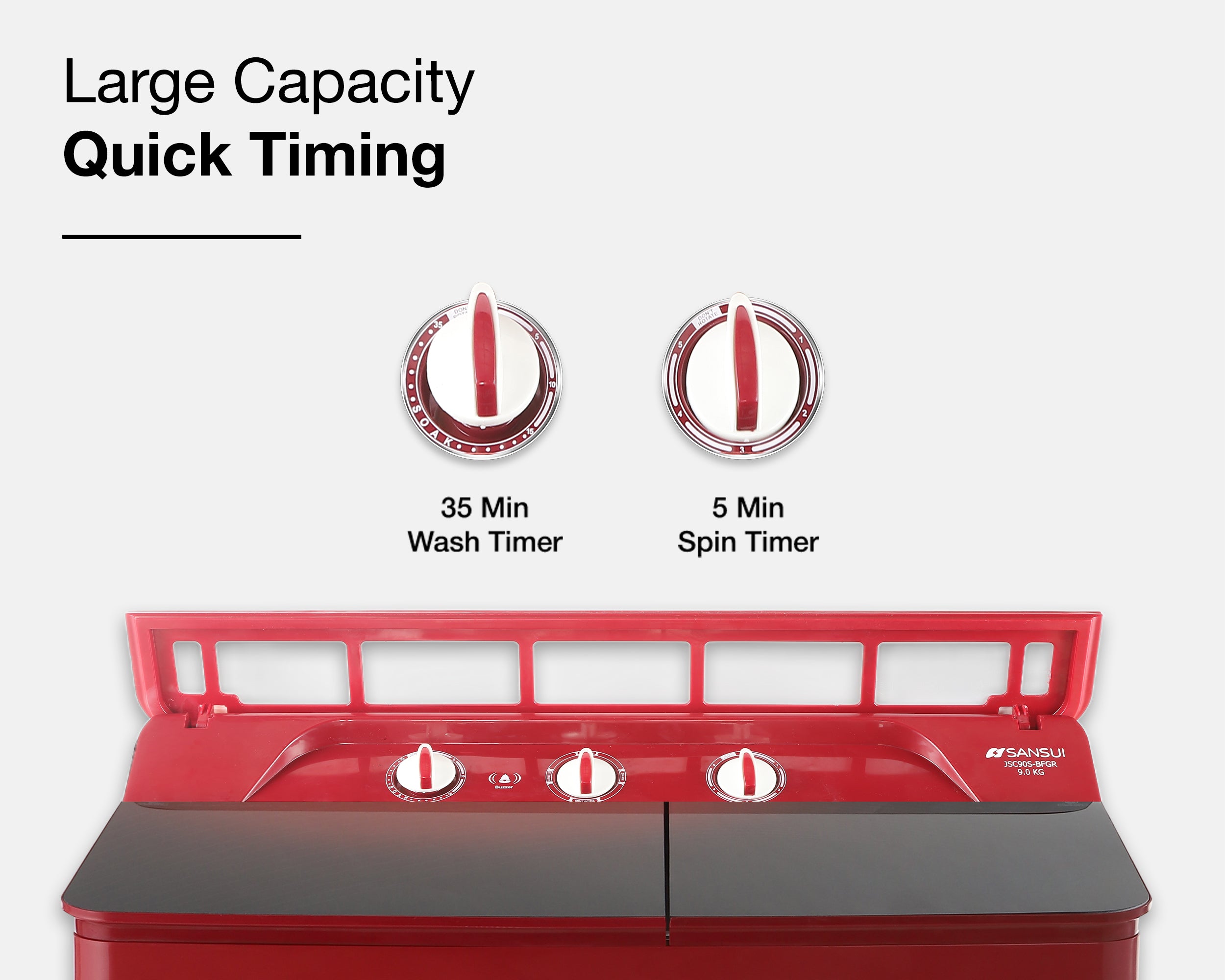 Sansui 9 kg 5 Star with Full Glass Top, Power Dry and Dynamic Pulsator Semi Automatic Top Load Washing Machine Red (JSC90S-BFGR)