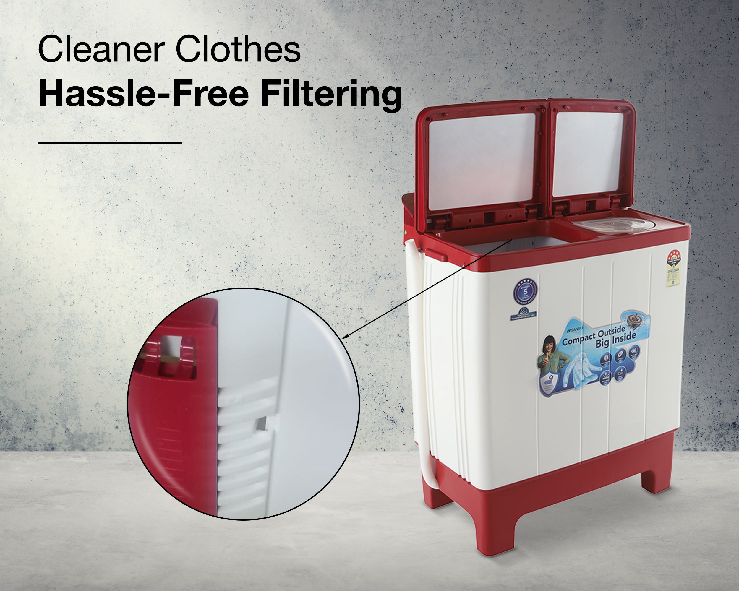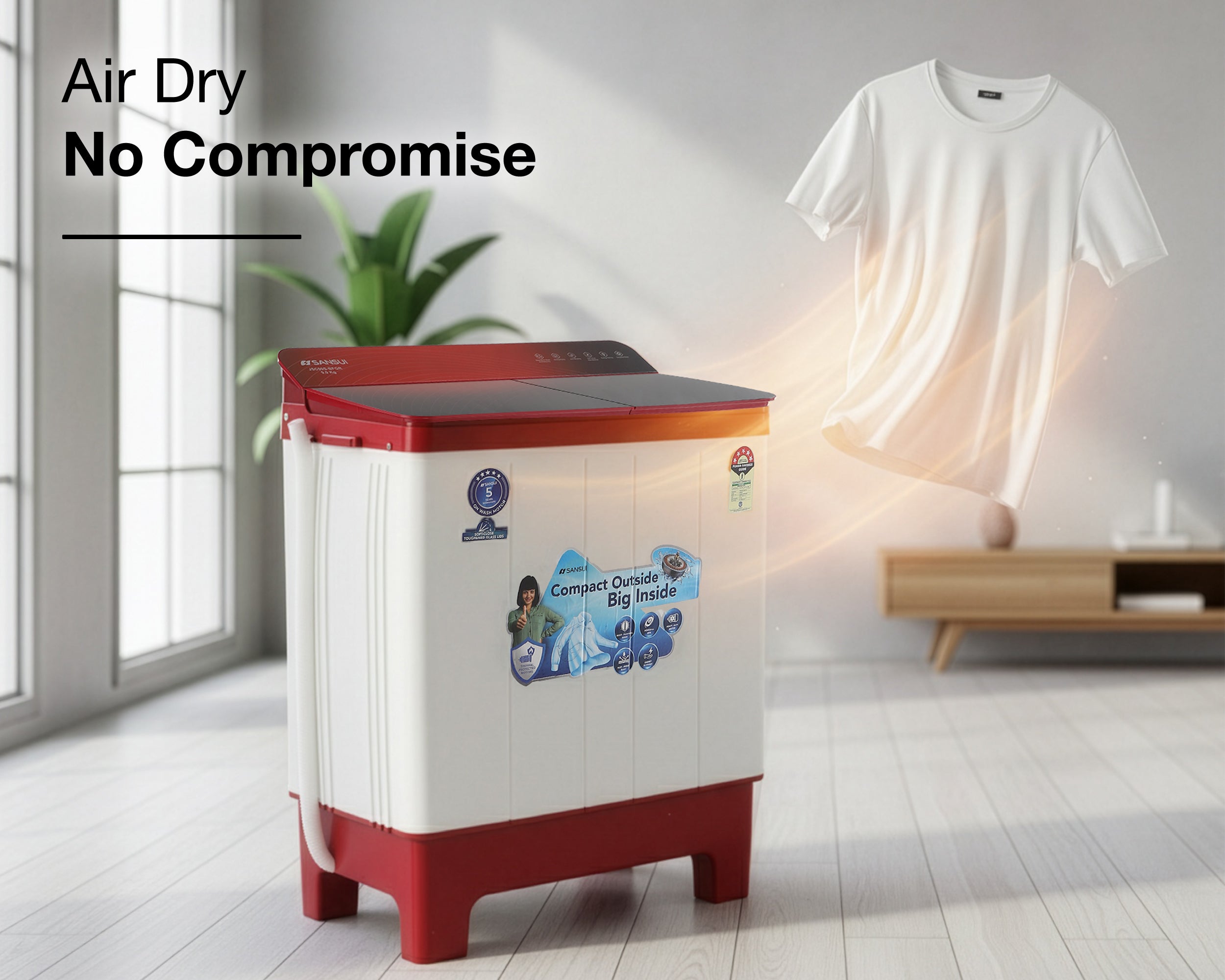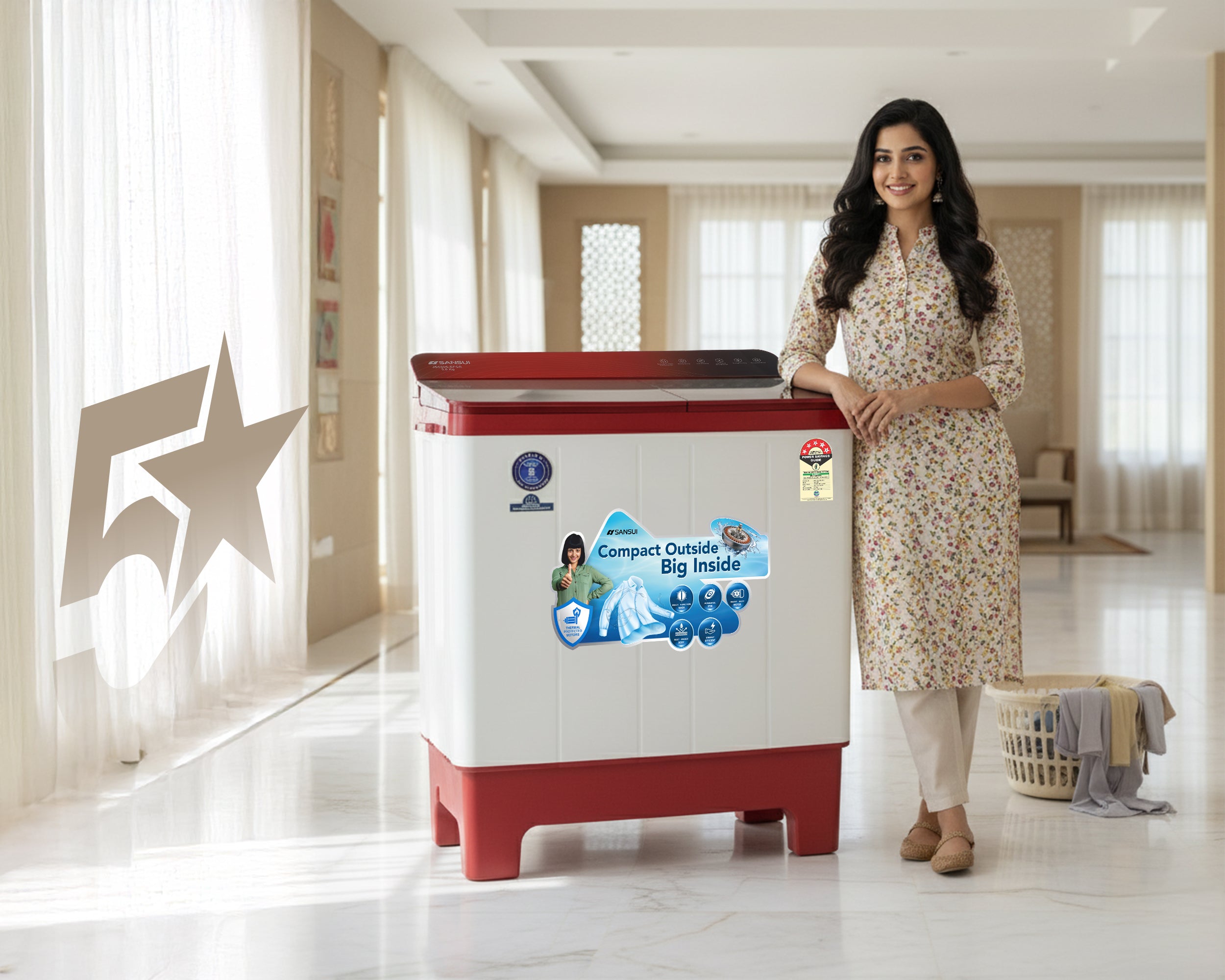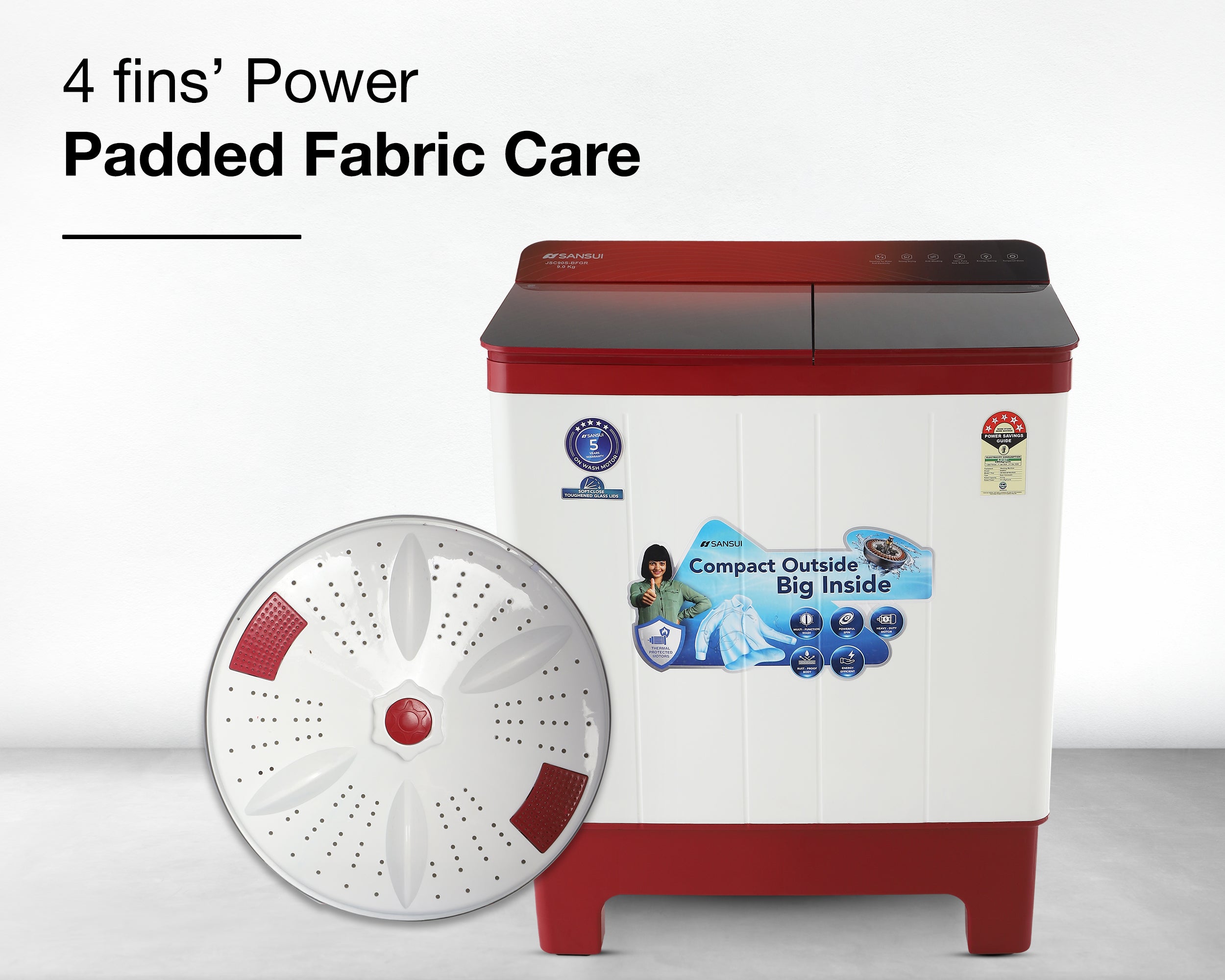 Experience 5-star cleaning with Sansui’s advanced wash technology. Perfect for families up to 5, it offers powerful, efficient washes with multiple fabric care programs. Enjoy moisture-free drying, lint-free clothes, and spotless results with the Magic Filter, Collar Scrubber, and 4-fin Pulsator—effortless freshness in every wash.