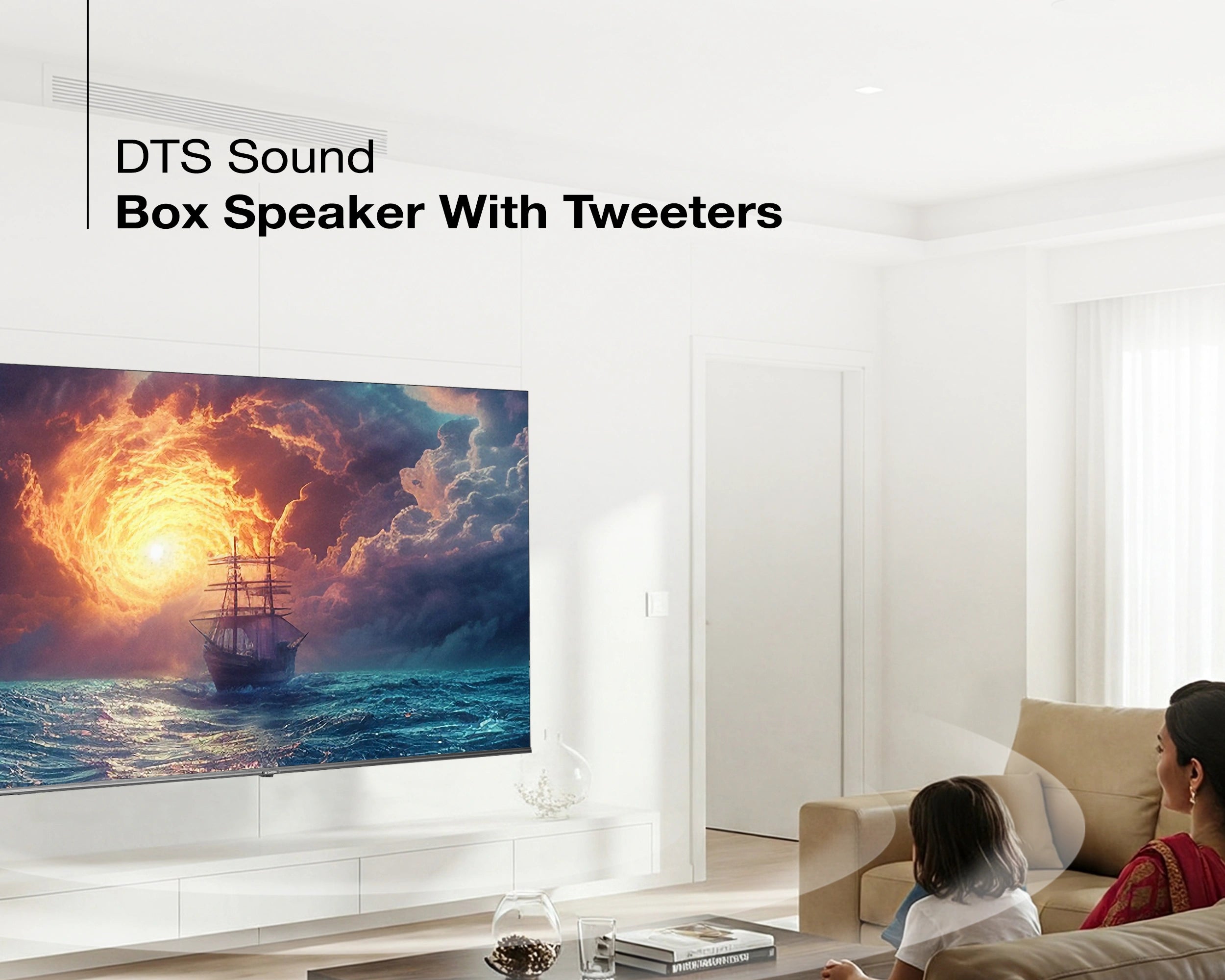 Experience unparalleled audio immersion with Dolby Atmos and DTS sound, enhanced by robust 30W box speakers featuring tweeters and automatic volume control for superior listening enjoyment.