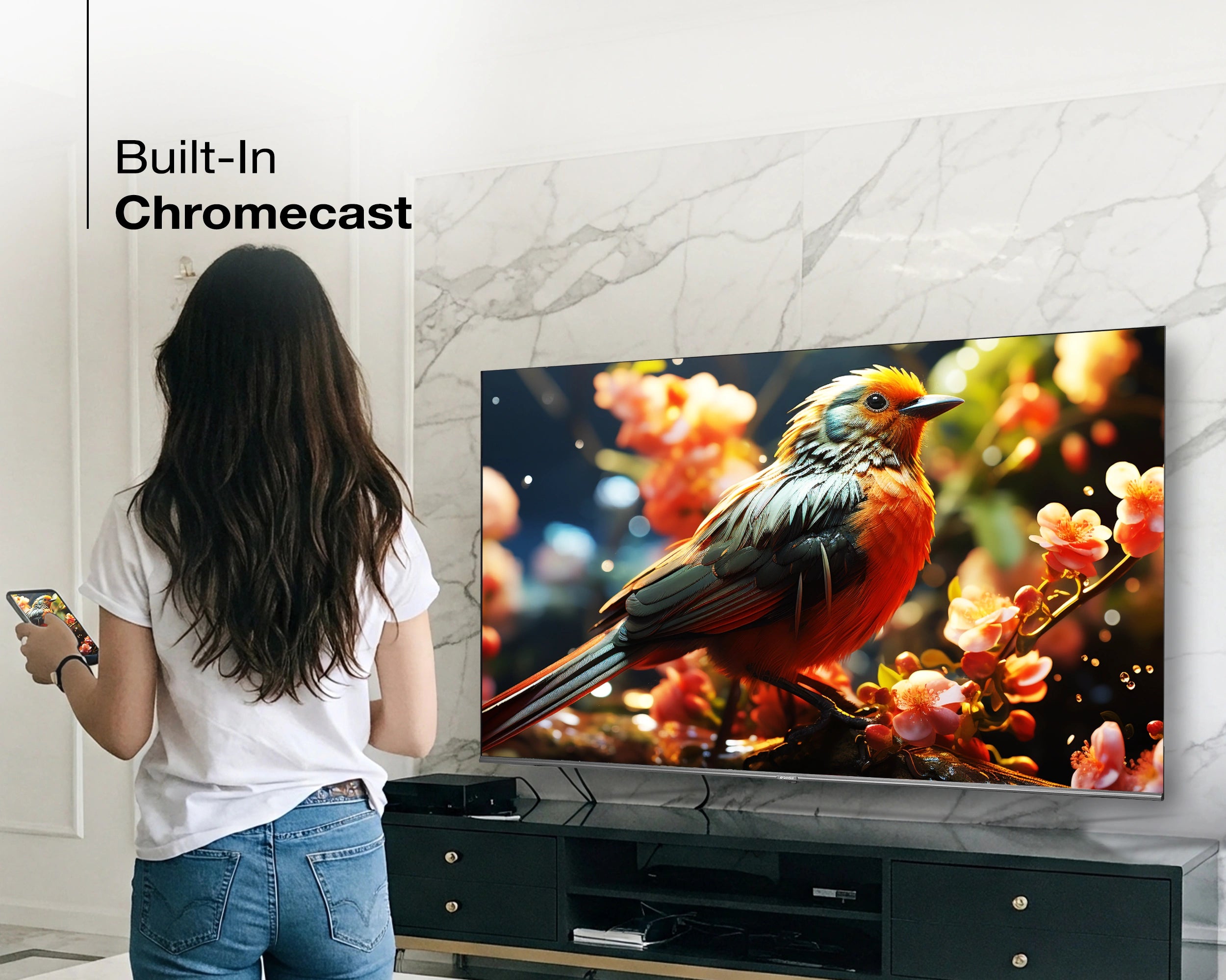 Thanks to the integrated built in Chromecast, you can effortlessly stream content from your smartphone or tablet to this QLED TV, allowing you to enjoy your favorite shows on a larger screen.