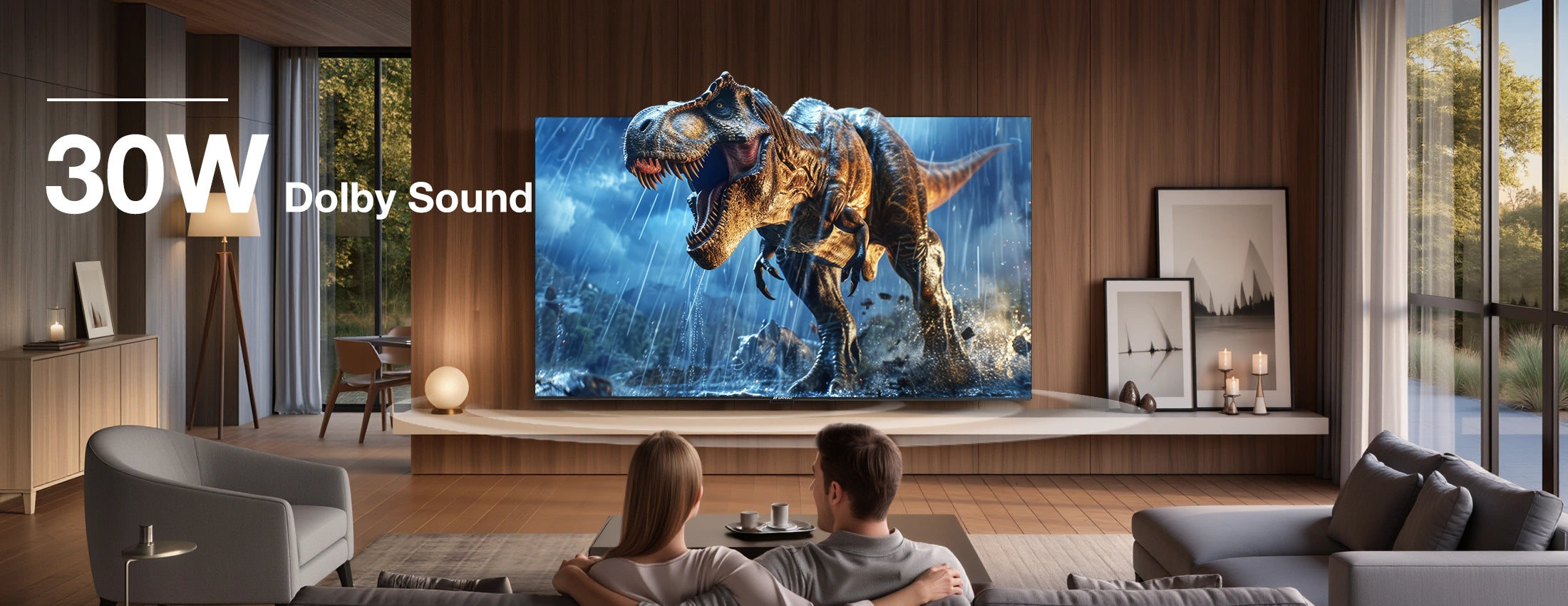 Experience room-filling sound with powerful 30W box speakers tuned with Dolby Audio. From crisp dialogue to deep, impactful bass, your movies and shows gain rich clarity and immersive surround sound—bringing every moment to life right in your living room.