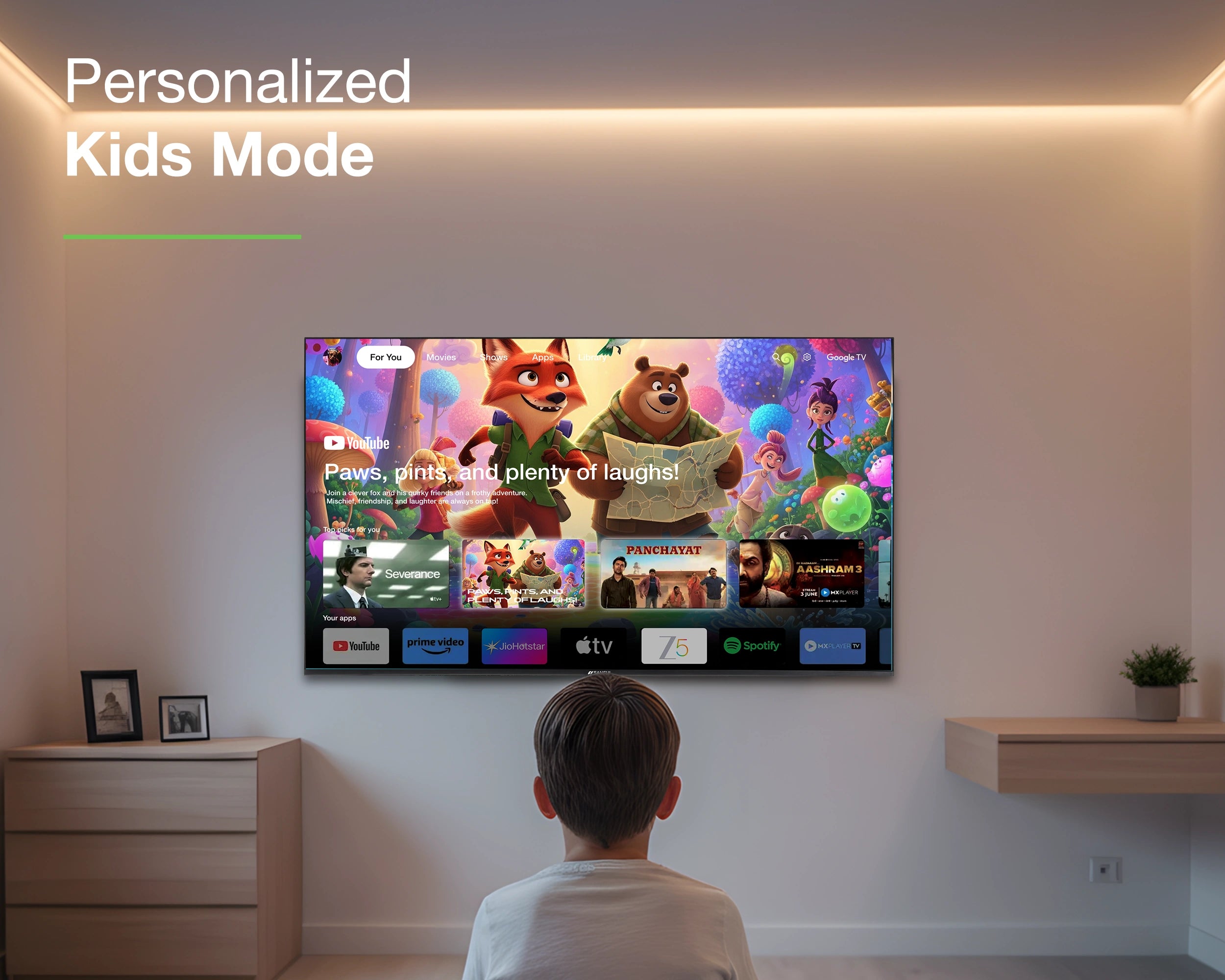 Google TV powered by Android 14 brings a smoother, more personal viewing experience. Enjoy quick setup, tailored recommendations, easy navigation, and built-in tools like Kids Mode and energy-saving features—all designed to make everyday watching simpler and smarter.
