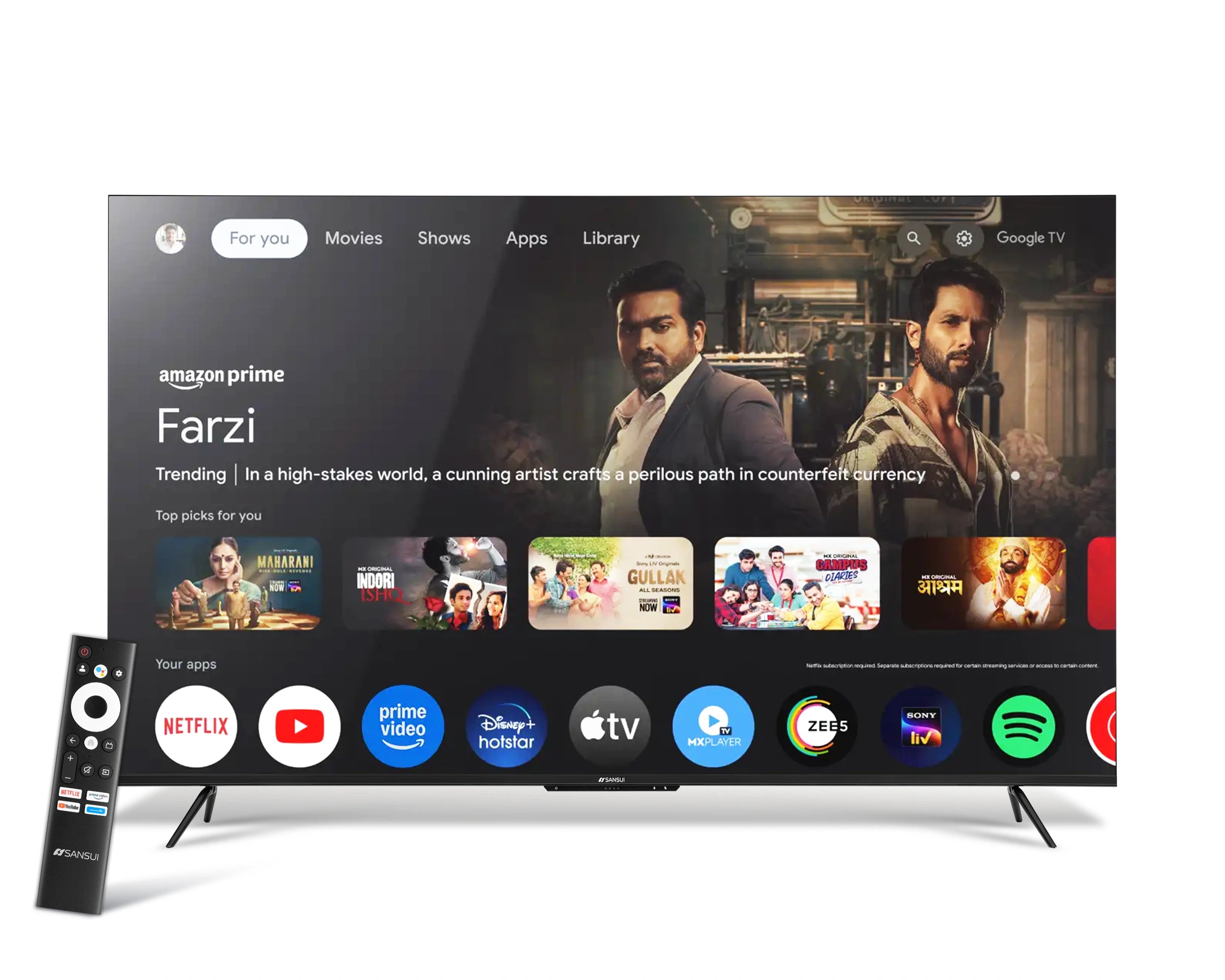 Sansui TVs offer various connectivity options, including HDMI dual connectors, Bluetooth, Wi-Fi, and twin USB ports.