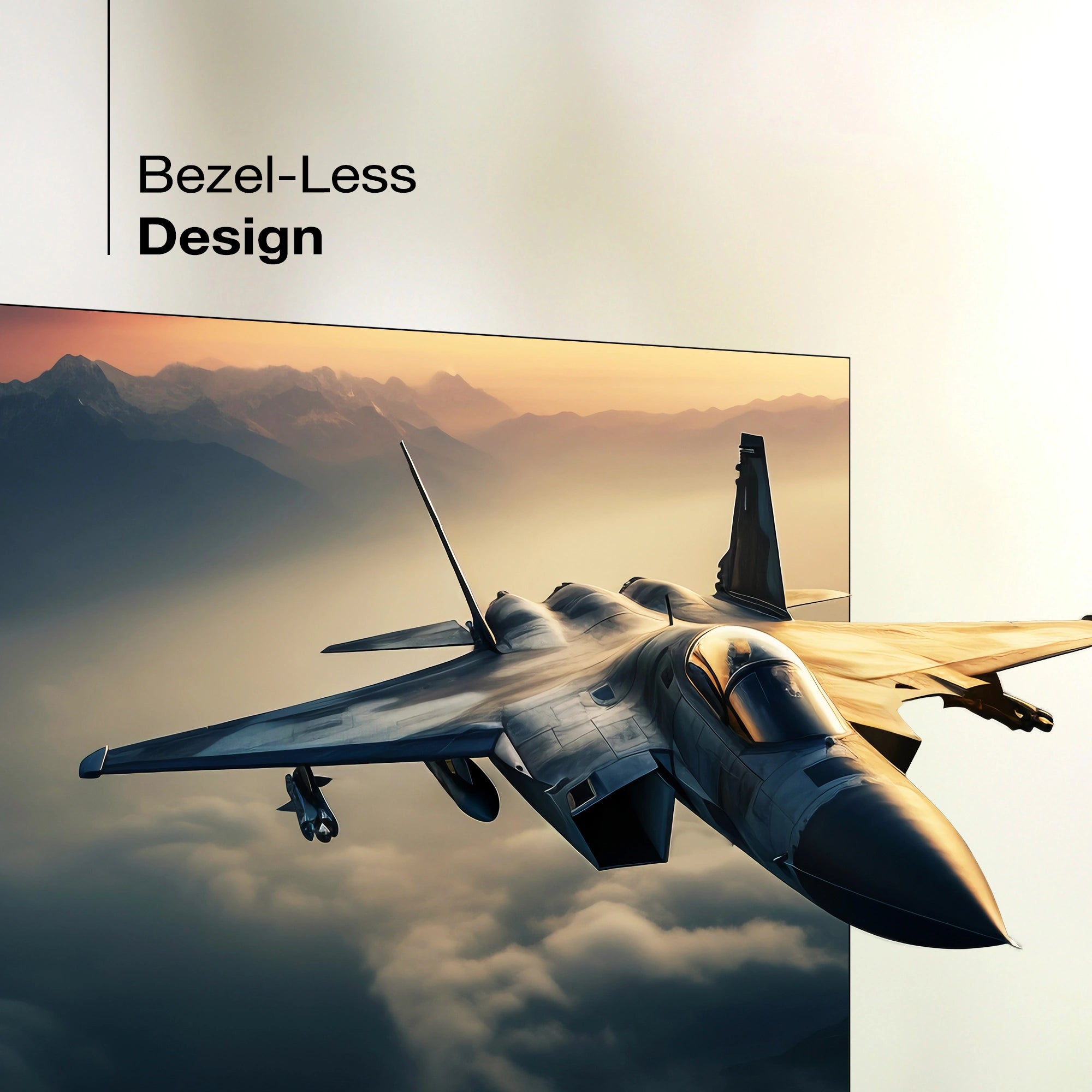 Designed to leave a lasting impression, the sleek bezel-less design provides an immersive experience. Its sophisticated look effortlessly enhances home decor, acting as a stunning focal point in any environment.