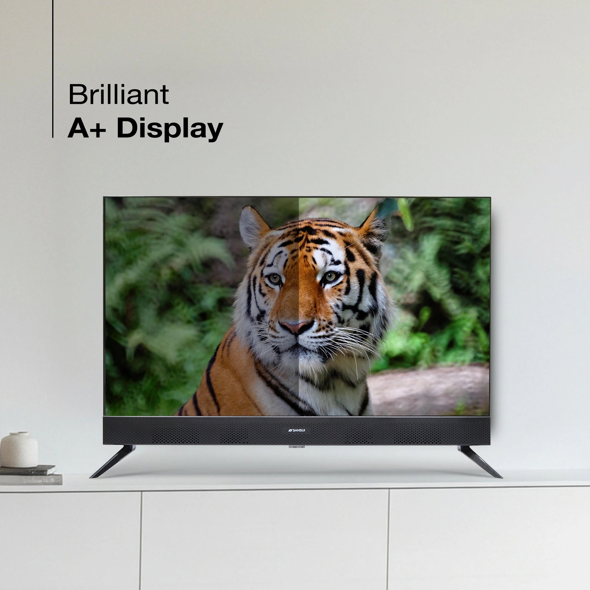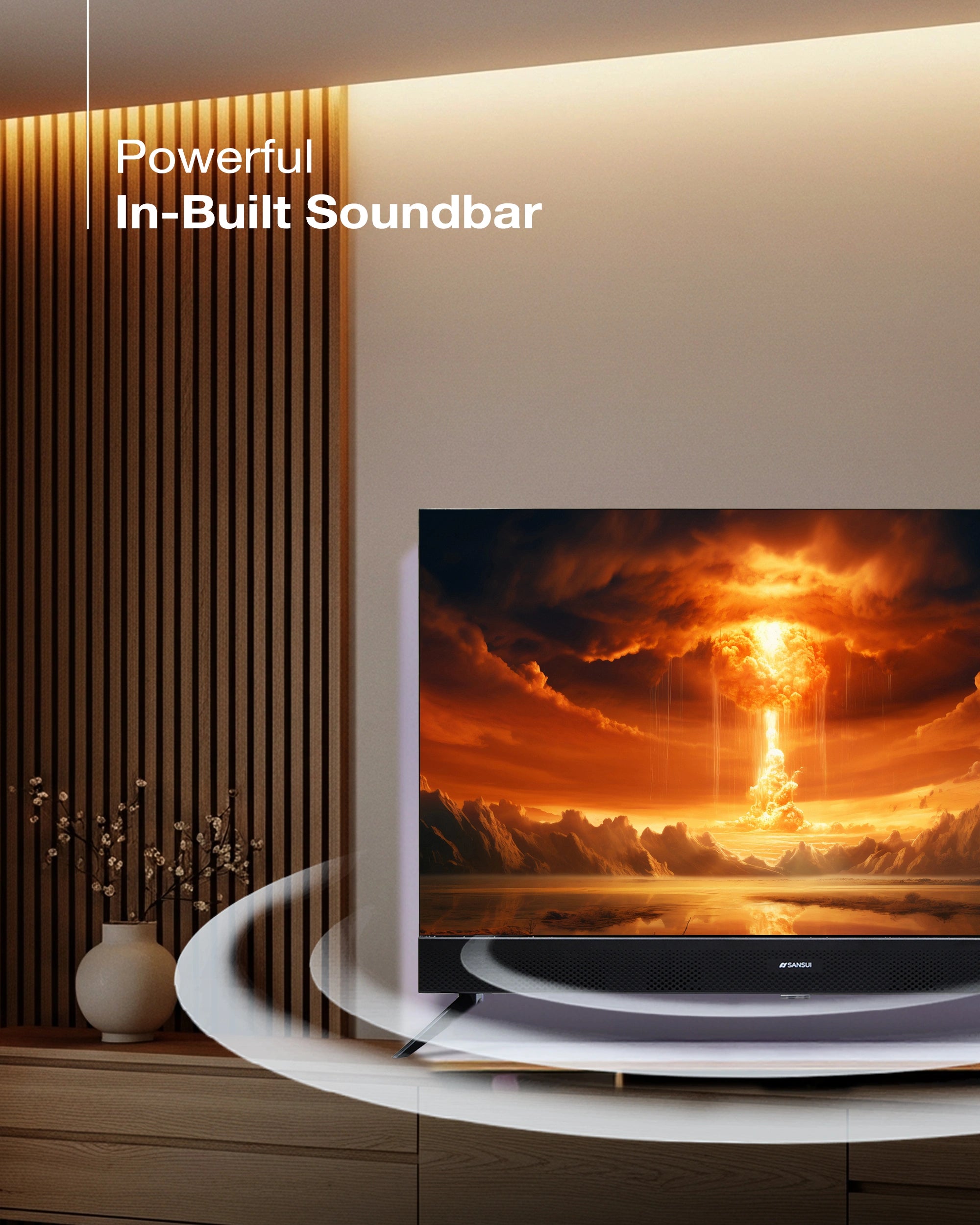 The Sansui 80 cm (32 inches) Google QLED TV features an A+ Panel and Dynamic Color Enhancer for vibrant visuals. Its sleek, bezel-less design provides an immersive cinematic experience. With built-in Surround Sound, Dolby Audio, and an integrated sound bar, enjoy clear dialogue and deep audio without needing extra speakers.