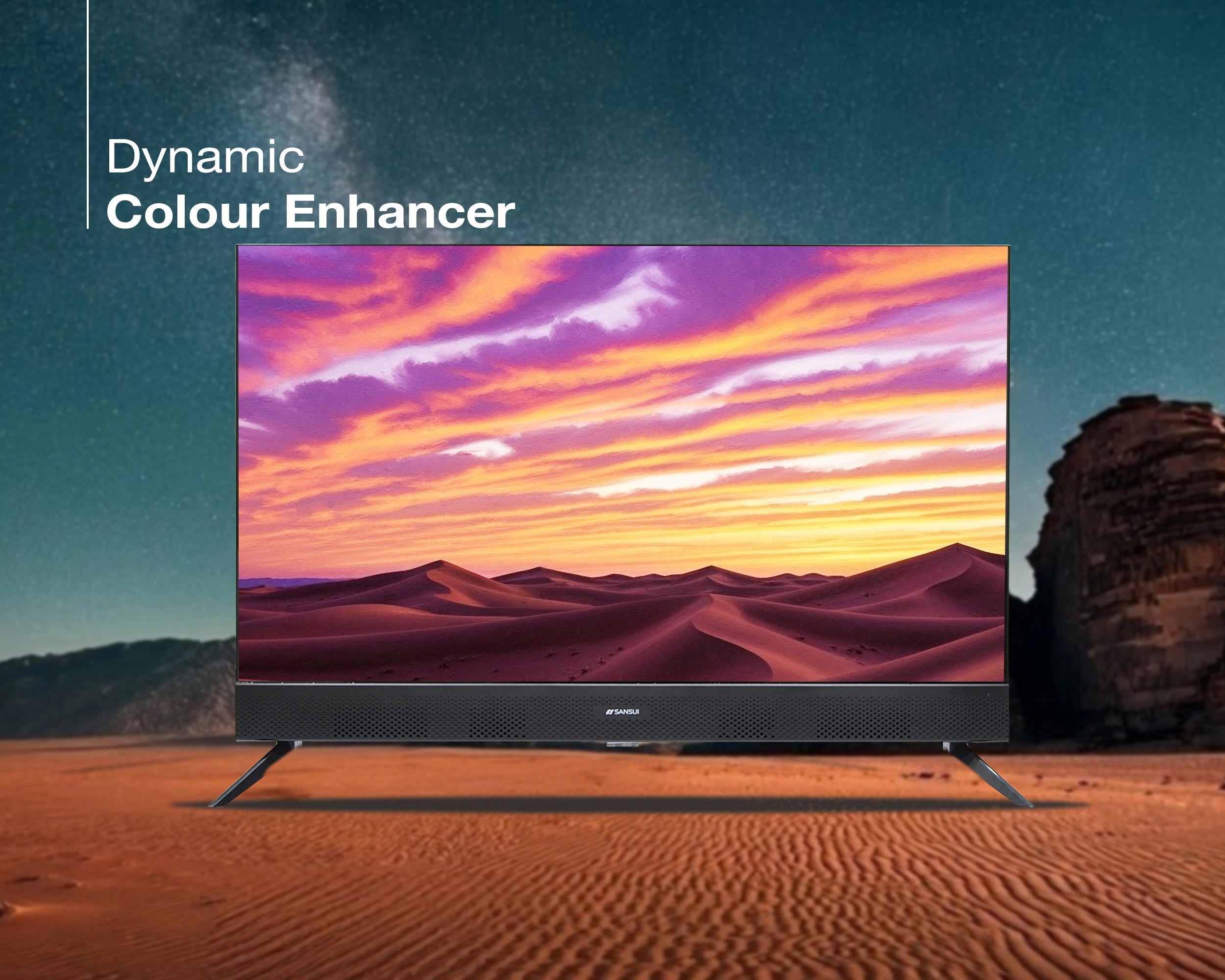 Enjoy stunning visuals with our A+ panel. Our Dynamic Color Enhancer brings every scene to life with vibrant, natural colors for an immersive viewing experience. This Sansui TV delivers vivid colors, sharp contrasts, and crystal-clear details, making each scene appear exceptionally lifelike.