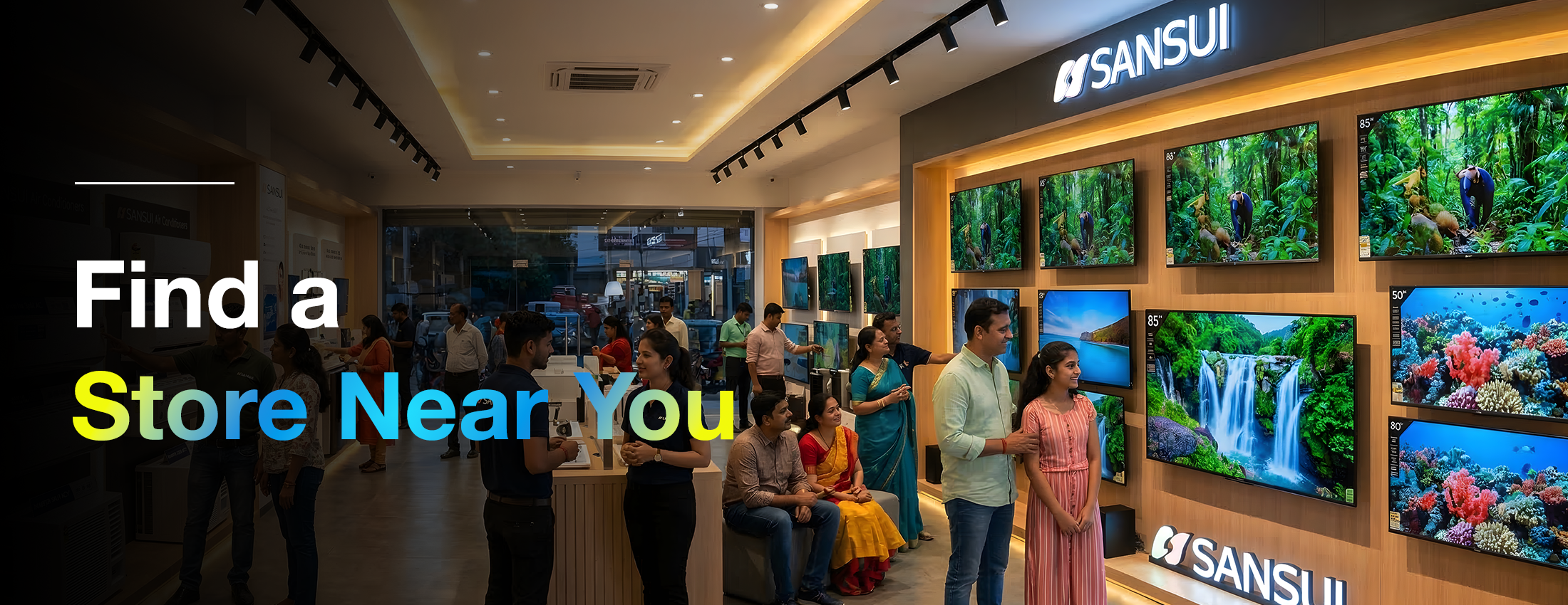 Visit our partner stores for a curated selection of Sansui electronics and appliances. Explore top-quality products designed for your lifestyle, with friendly service and great deals.