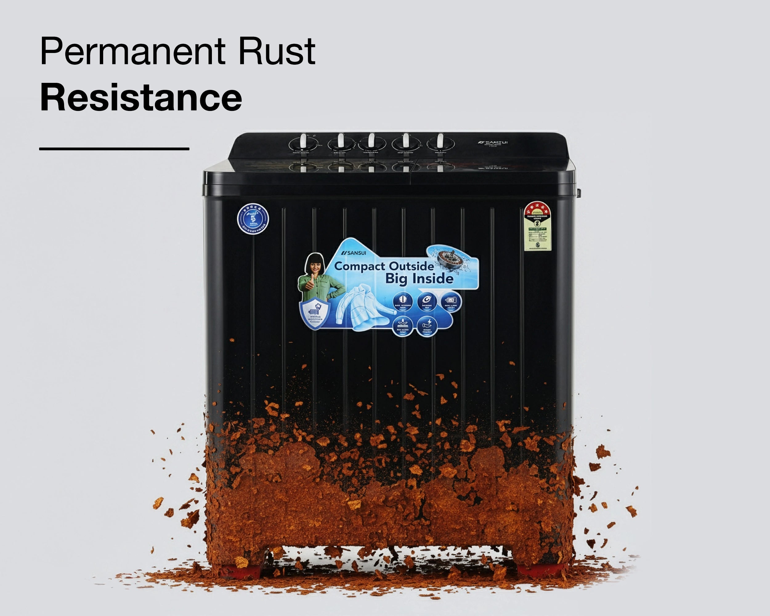 - Special Features: Spin Basket balancer with Saline water, Waterfall, Water level selector, Soft Closing Lids, Thermal-protected Motors, Buzzer, Caster Wheels, Magic Filter, 5 Star BEE ratings, Rust-Free Plastic Body and Water Resistance - IPX Grade.