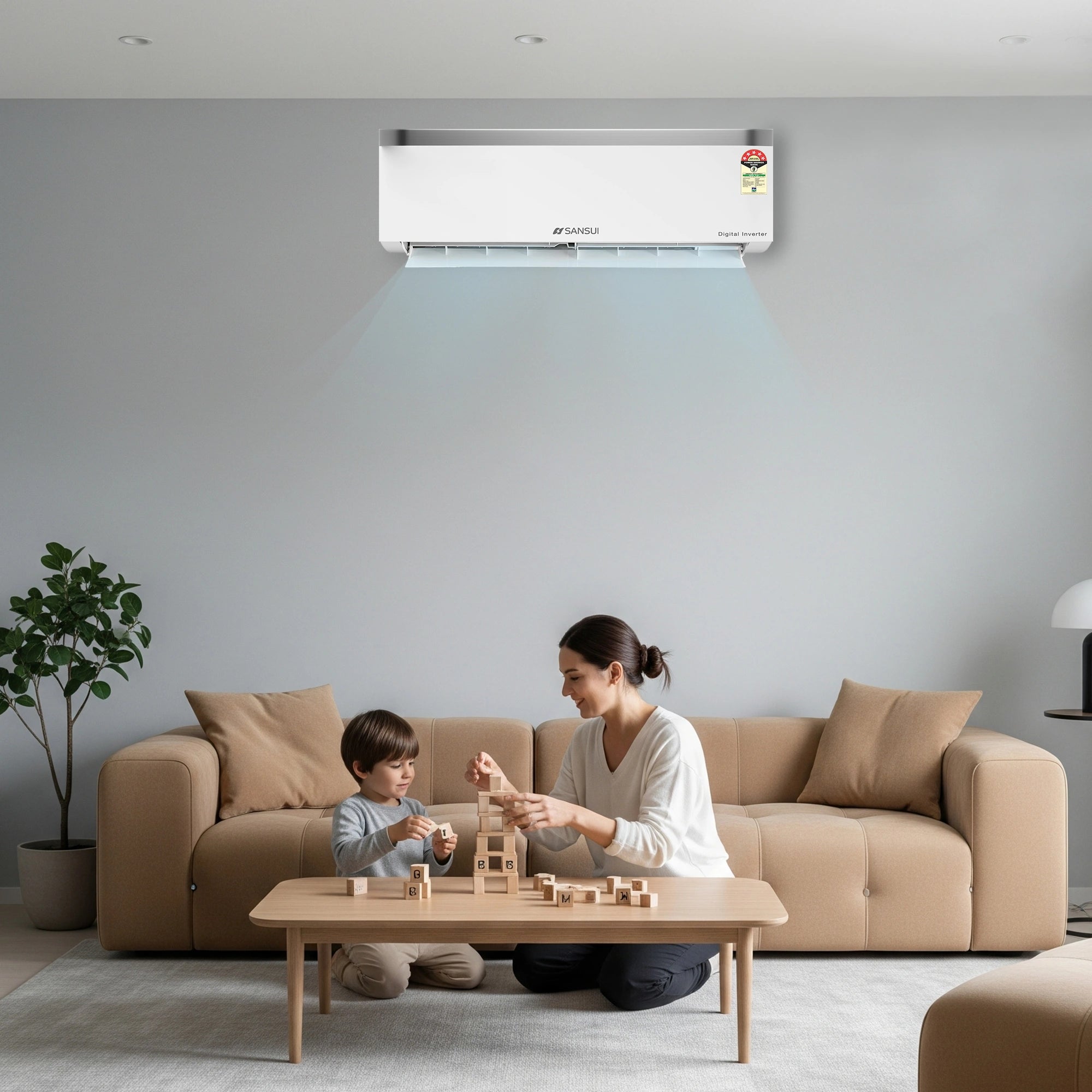 Using R32 refrigerant, the Sansui Inverter AC not only cools effectively but also minimizes environmental impact by reducing carbon emissions, offering energy-efficient and eco-conscious cooling.