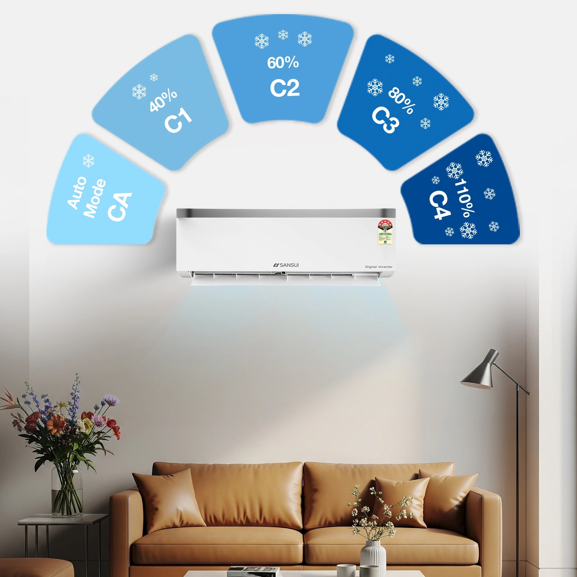 Sansui 1.5 Ton 5 Star Split Inverter AC with Zen Cool, 5-In-1 Convertible Mode, 4-Way Swing, 100% Copper Tubing & Blue Fin